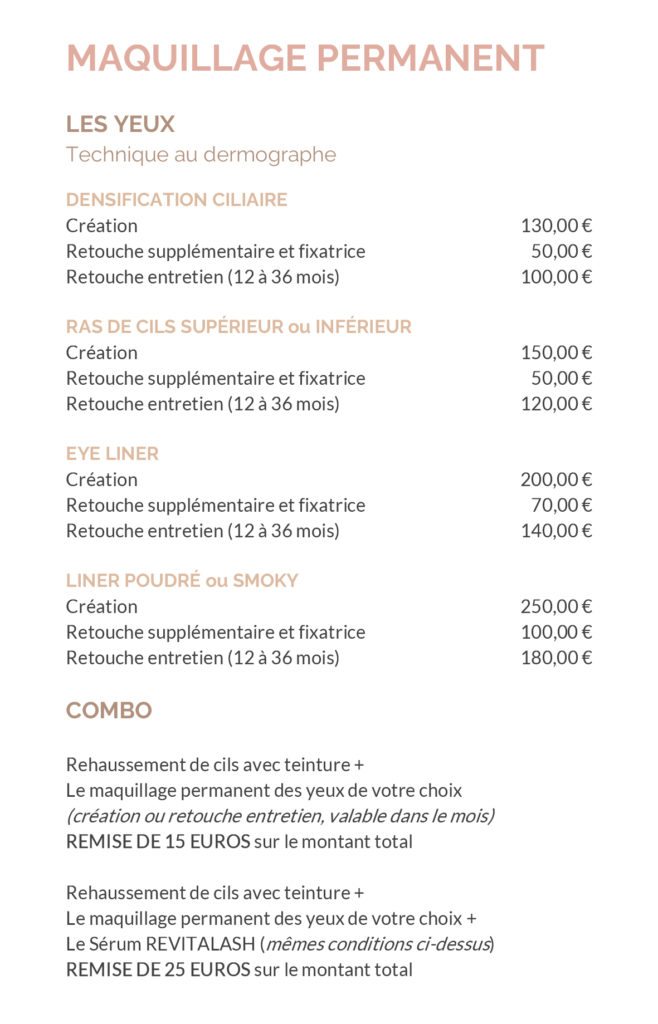 La séance dure environ 1h15 pour le ras de cils et 1h45 pour l’eye liner.
